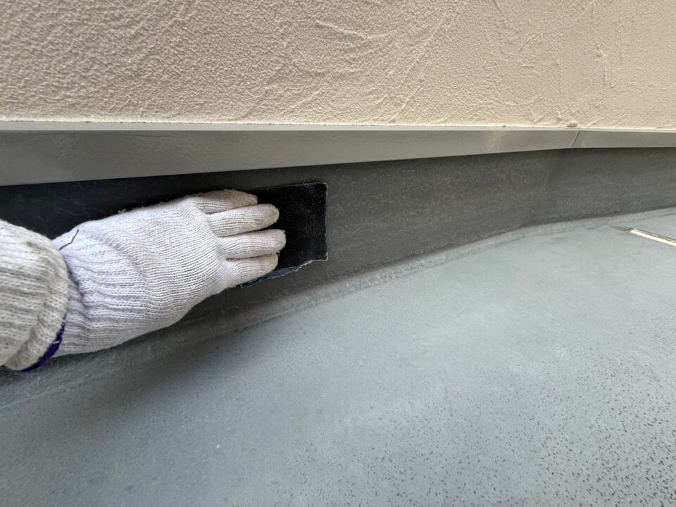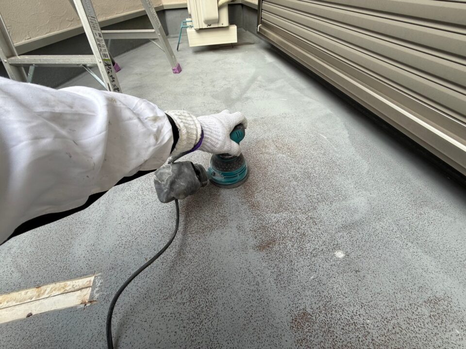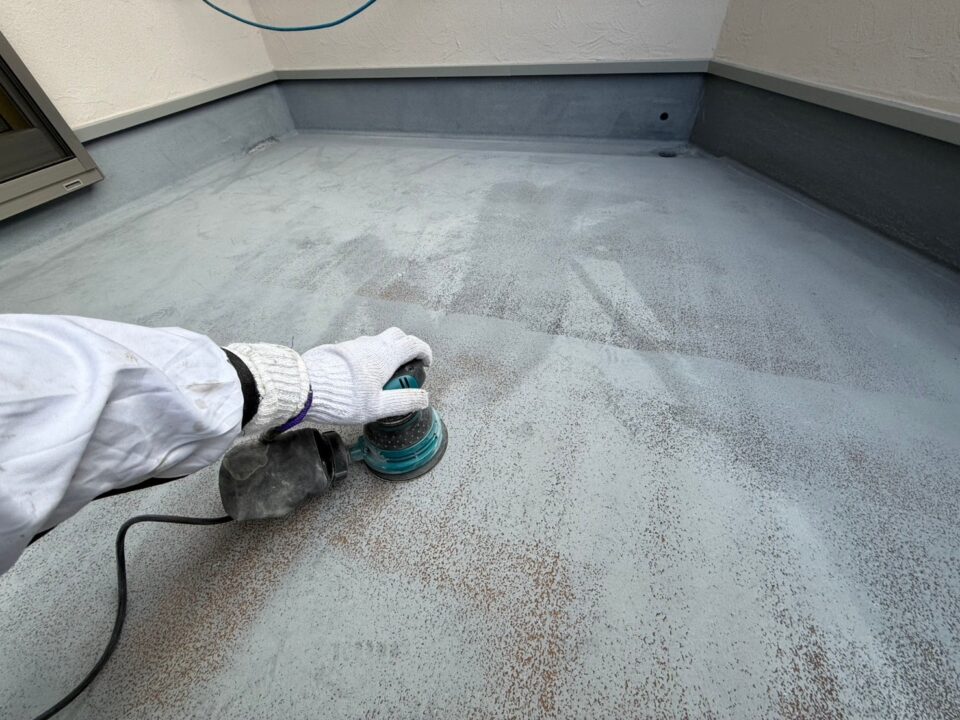 防水の密着性を確保するためにサンドペーパーで目荒らしを行います。