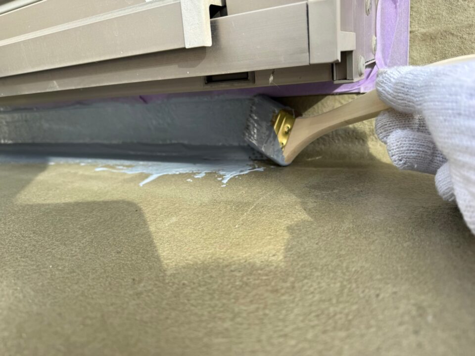 立面・補強布部 ウレタン塗膜防水材塗布1回目 完了